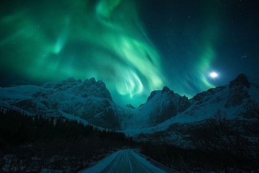 Moon Night White Modern Wood Framed Art Print with Double Matting by Selions