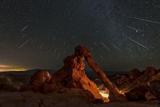 Geminid Meteor Shower Above The Elephant Rock White Modern Wood Framed Art Print with Double Matting by Zhu, Hua