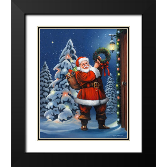 Santa Wreath Black Modern Wood Framed Art Print with Double Matting by Zaccheo, John