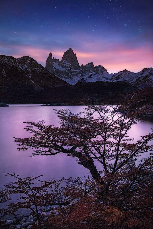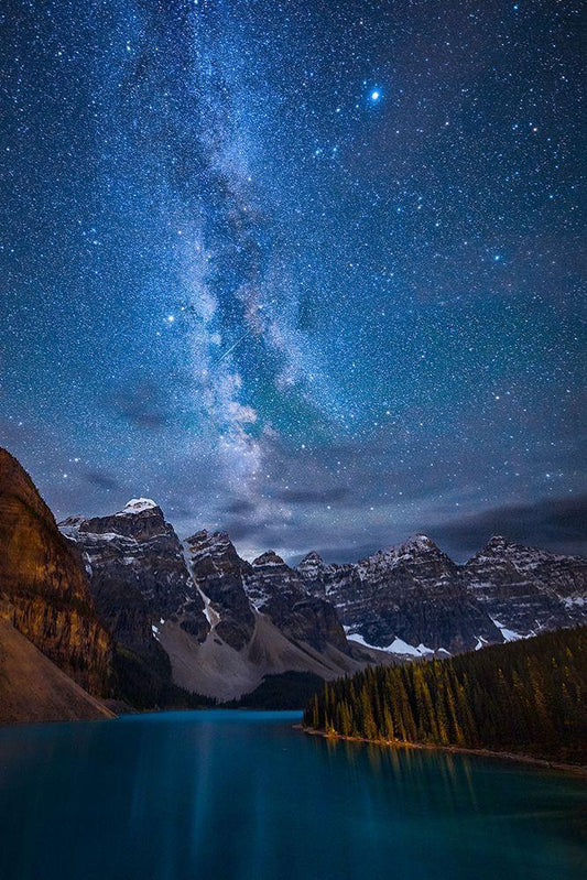 Moraine Lake Under The Night Sky White Modern Wood Framed Art Print with Double Matting by Zheng, Michael