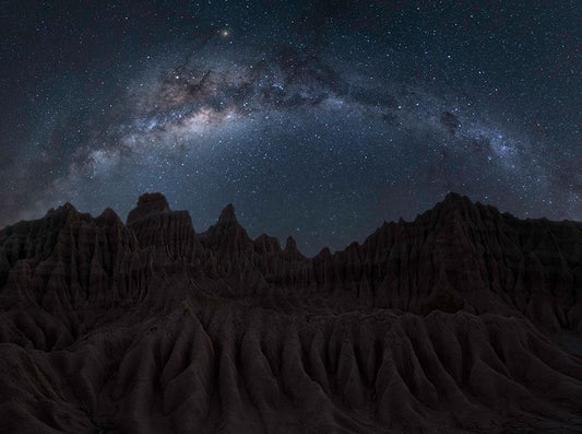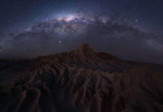 Milky Way Over The Monument Valley White Modern Wood Framed Art Print with Double Matting by Zhu, Hua