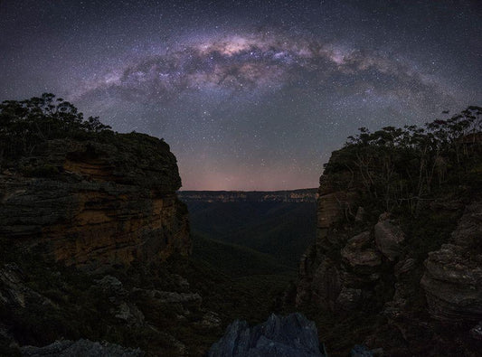Night Sky Over Blue Mountains White Modern Wood Framed Art Print with Double Matting by Zhang, Yan