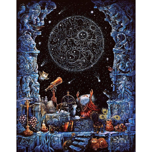 The Astrologers Dream Black Modern Wood Framed Art Print with Double Matting by Bell, Bill