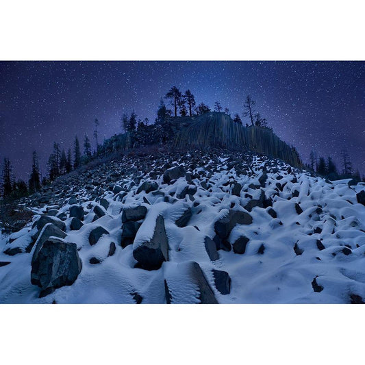 Cold Mountain: Devils Postpile White Modern Wood Framed Art Print by Zhang, Yan