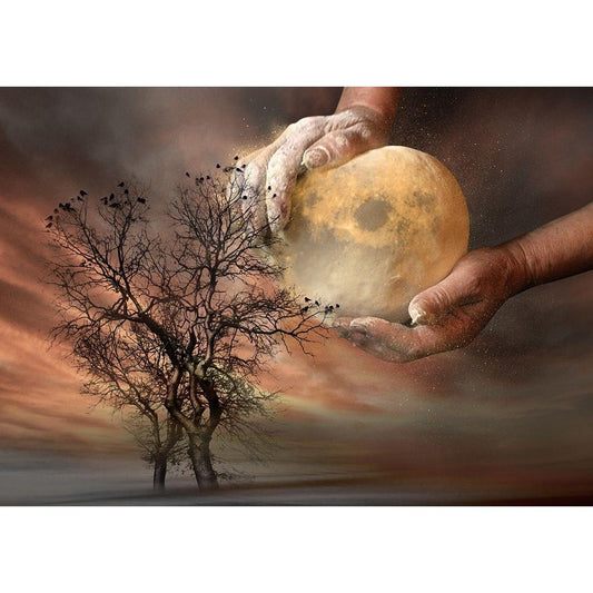 The Moon Flowers White Modern Wood Framed Art Print by Treechild