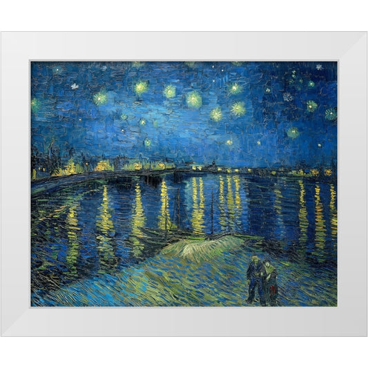 The Starry Night Over The Rhone White Modern Wood Framed Art Print by Pictufy