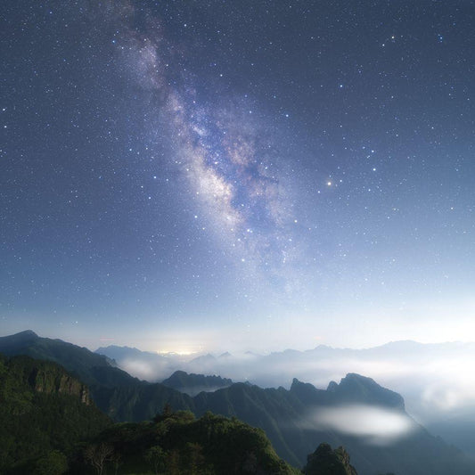 Night Sky Over A Mountain Ridge White Modern Wood Framed Art Print by Cai, James