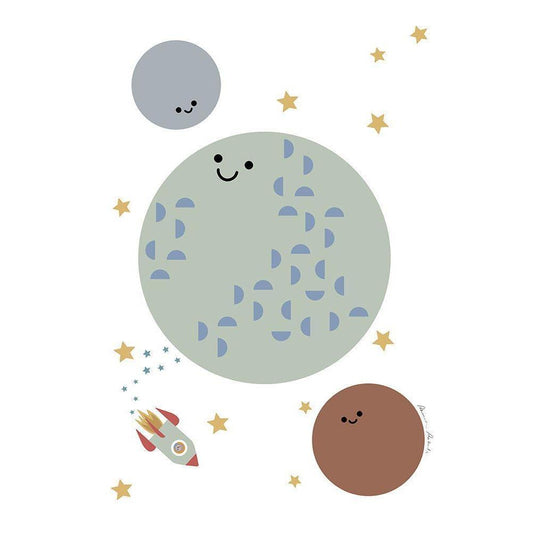 Solar Earth Moon White Modern Wood Framed Art Print by 1x Studio II