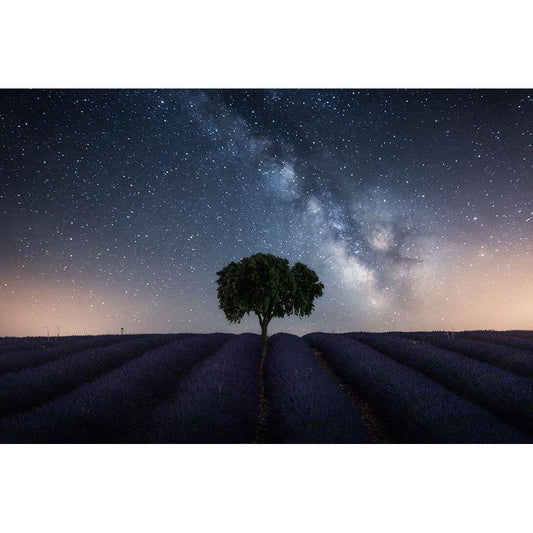 Tree And Milky Way White Modern Wood Framed Art Print by Ruiz Dueso, Jorge