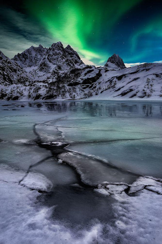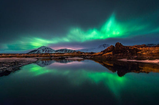 Northern Lights Reflection White Modern Wood Framed Art Print with Double Matting by Auf Dem, Andrea