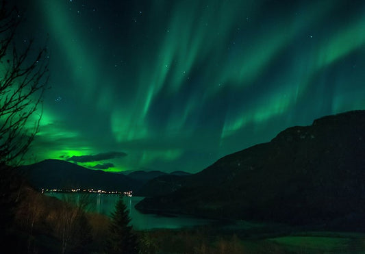 Northern Lights In October White Modern Wood Framed Art Print with Double Matting by Caroline Stroksnes, Mette