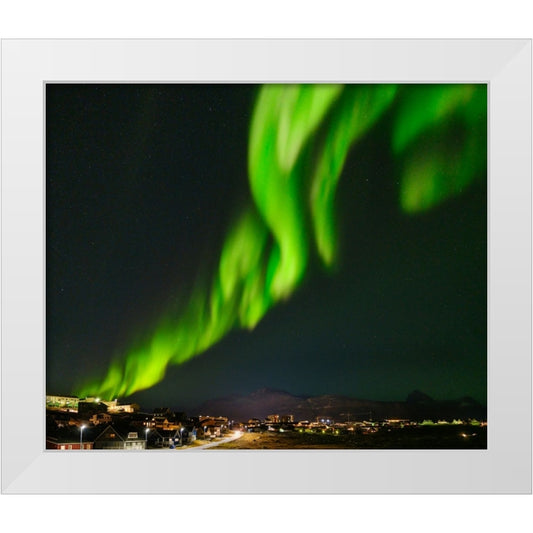 Northern lights over Nuuk. - Greenland- Danish Territory White Modern Wood Framed Art Print by Zwick, Martin
