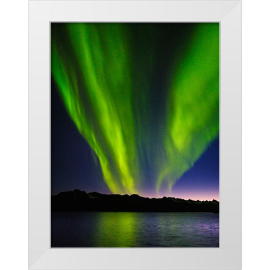 Northern lights over Angmagssalik Fjord-Greenland- Danish Territory White Modern Wood Framed Art Print by Zwick, Martin