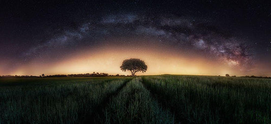 Milky Way Over Lonely Tree White Modern Wood Framed Art Print with Double Matting by Ferrero, Ivan