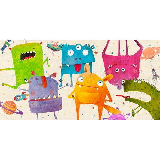 Alien Friends White Modern Wood Framed Art Print by Teller, Skip
