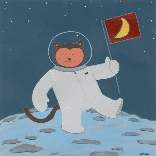 Monkeys in Space IV White Modern Wood Framed Art Print by Vess, June Erica