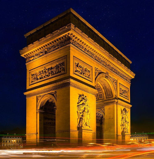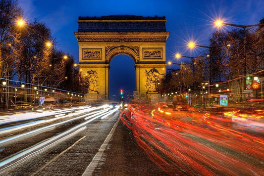 Traffic passes the Arch de Triumph on the Champs Elysee in Paris-France White Modern Wood Framed Art Print with Double Matting by Steve Mohlenkamp