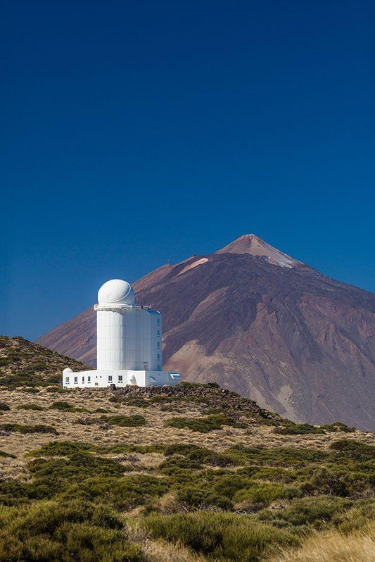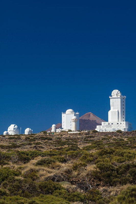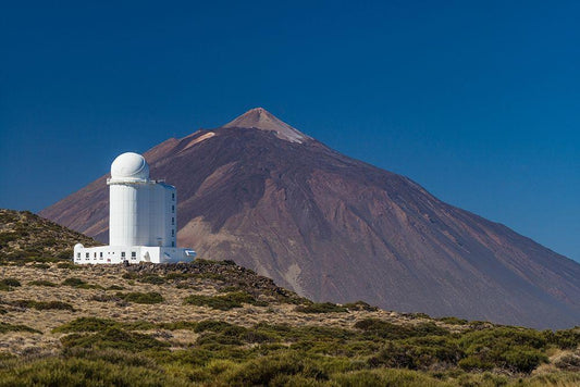 Canary Islands-Tenerife Island-El Teide Mountain-Observatorio del Teide-astronomical observatory White Modern Wood Framed Art Print with Double Matting by Bibikow, Walter