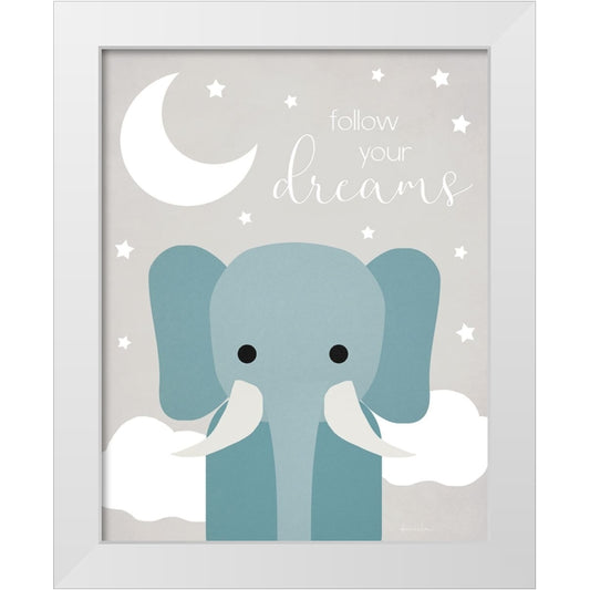 Dreams Elephant White Modern Wood Framed Art Print by Santiago, Daniela