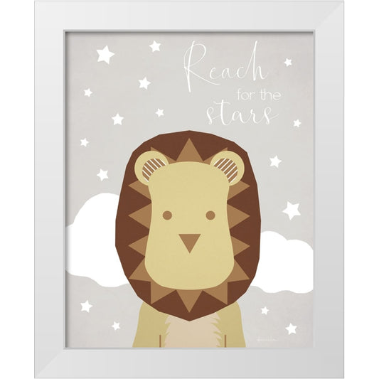 Stars Lion White Modern Wood Framed Art Print by Santiago, Daniela