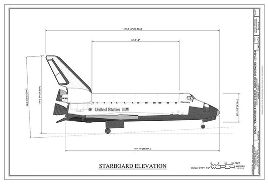 Discovery Starboard Elevation White Modern Wood Framed Art Print with Double Matting by Stellar Design Studio