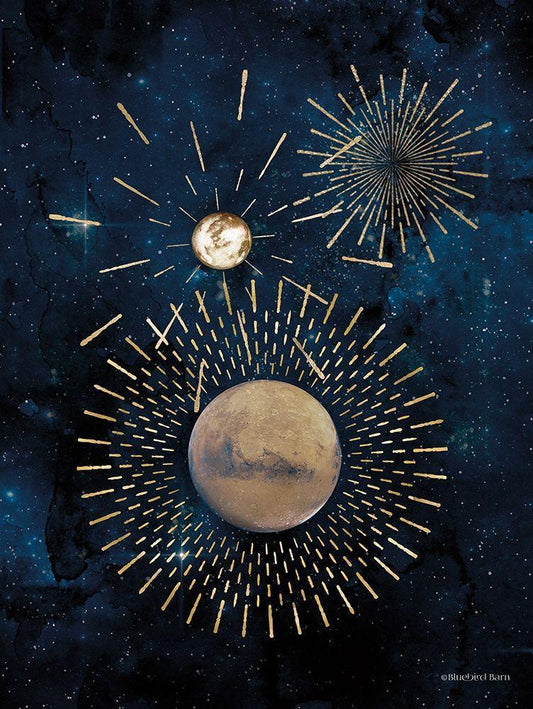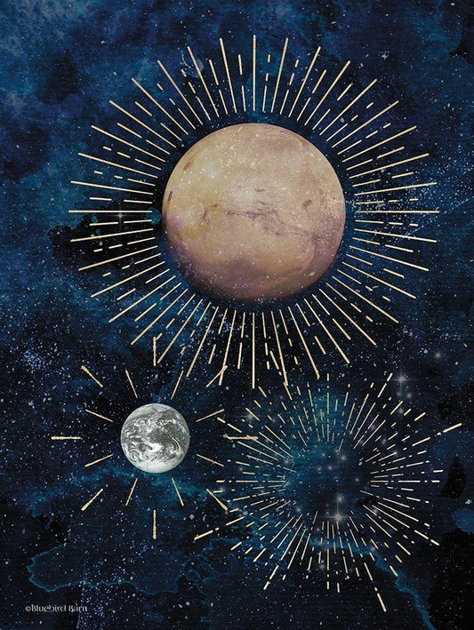 Vintage Celestial Planets White Modern Wood Framed Art Print with Double Matting by Bluebird Barn