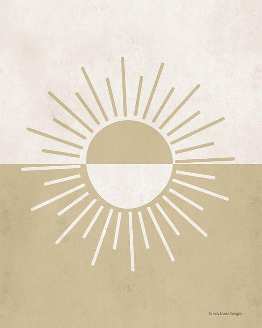 Neutral Nursery Half Sun White Modern Wood Framed Art Print with Double Matting by Lady Louise Designs