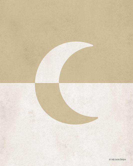 Neutral Nursery Half Moon White Modern Wood Framed Art Print with Double Matting by Lady Louise Designs