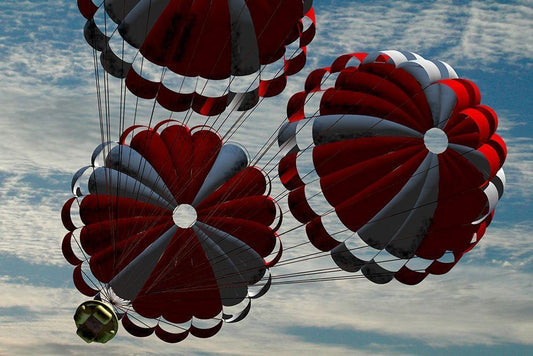 Orion descending by parachute on re-entry to Earth, Project Constellation White Modern Wood Framed Art Print with Double Matting by NASA