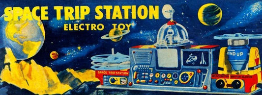 Space Trip Station Electro Toy White Modern Wood Framed Art Print with Double Matting by Retrobot
