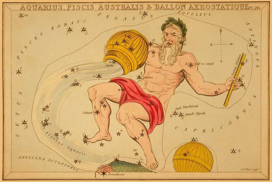 Aquarius, Piscis Australis and Ballon Aerostatique, 1825 White Modern Wood Framed Art Print with Double Matting by Aspin, Jehoshaphat