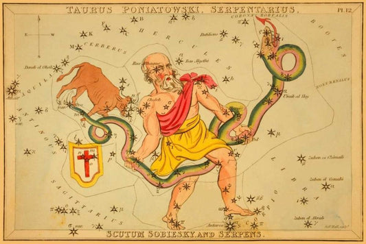 Taurus Poniatowski, Serpentarius, Scutum Sobiesky, and Serpens, 1825 White Modern Wood Framed Art Print with Double Matting by Aspin, Jehoshaphat