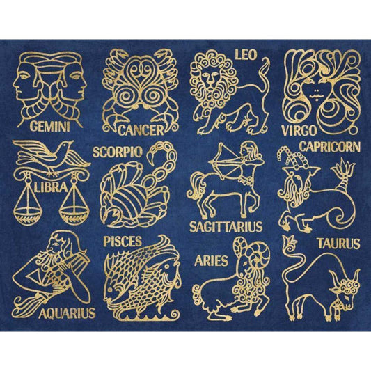 Whats Your Sign Blue Gold Gold Ornate Wood Framed Art Print with Double Matting by Wild Apple Portfolio