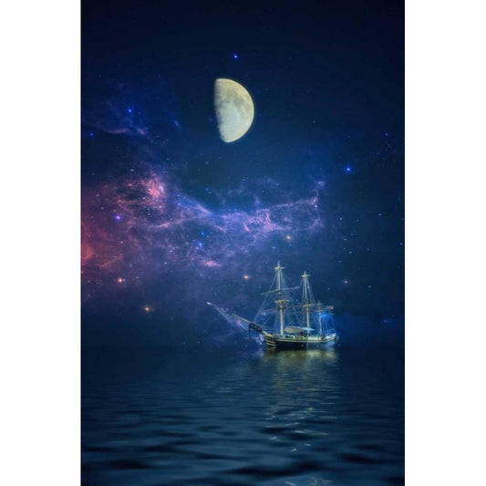 By Way of The Moon and Stars Gold Ornate Wood Framed Art Print with Double Matting by Rivera, John