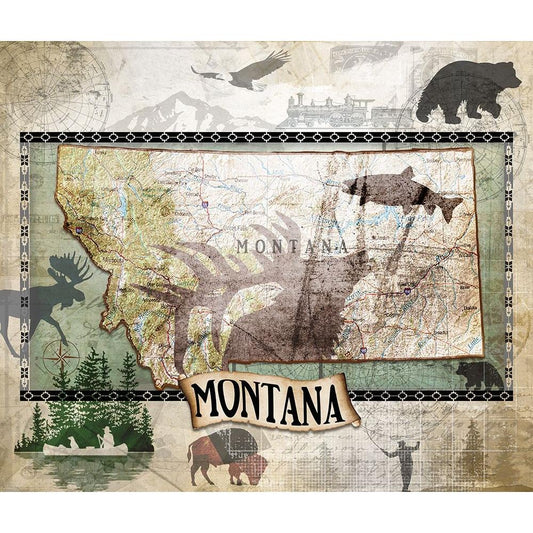 Vintage State Montana Gold Ornate Wood Framed Art Print with Double Matting by LightBoxJournal