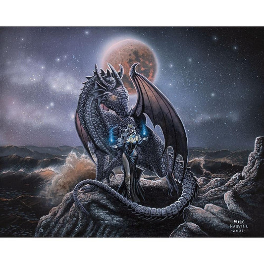 Sorcerous and Blood Moon Dragon Gold Ornate Wood Framed Art Print with Double Matting by Harvill, Marc