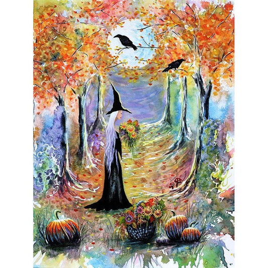 Autumn Witch Gold Ornate Wood Framed Art Print with Double Matting by Wickstrom, Martin