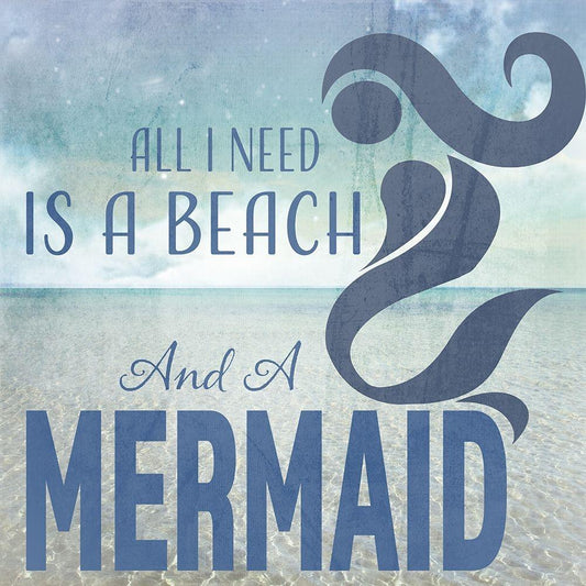 Signs_SeaLife_Typography_BeachAndAMermaid Gold Ornate Wood Framed Art Print with Double Matting by LightBoxJournal