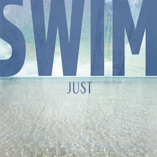 Signs_SeaLife_Typography_JustSwim Gold Ornate Wood Framed Art Print with Double Matting by LightBoxJournal