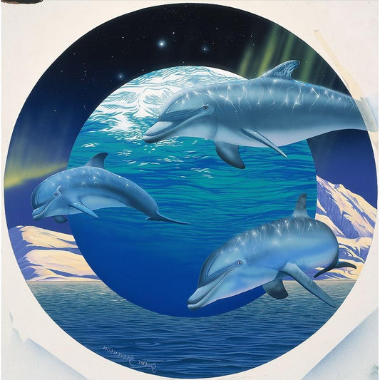 Dolphin Gold Ornate Wood Framed Art Print with Double Matting by Stevenson, Graeme