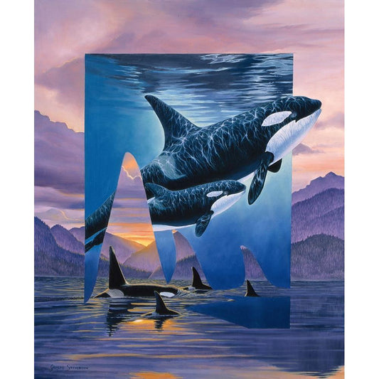 Orca Song Gold Ornate Wood Framed Art Print with Double Matting by Stevenson, Graeme