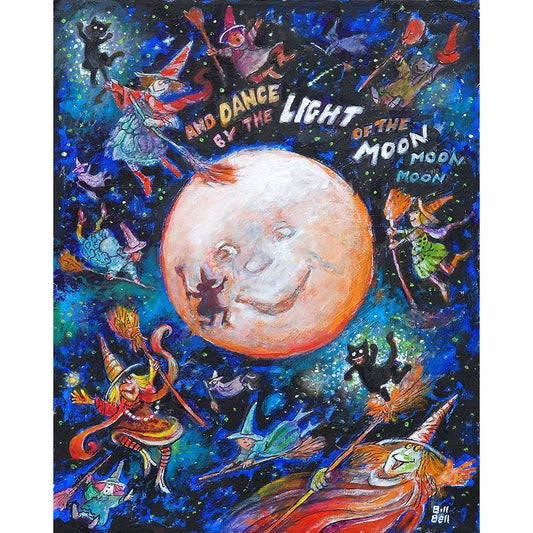 And Dance By The Light Of The Moon Gold Ornate Wood Framed Art Print with Double Matting by Bell, Bill
