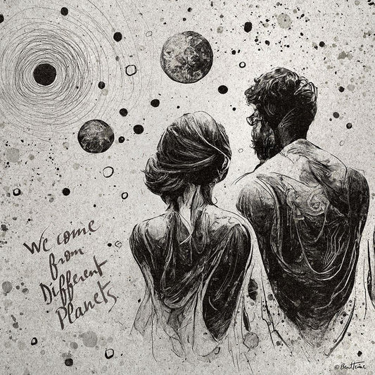 Astro Cruise 25 - We Come From Different Planets Gold Ornate Wood Framed Art Print with Double Matting by Heine, Ben