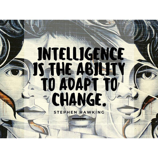 Stephen Hawking Quote: Adapt to Change Black Modern Wood Framed Art Print by ArtsyQuotes
