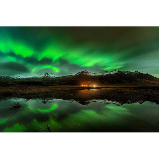 Lofoten Aurora Reflection Black Modern Wood Framed Art Print by De La, Javier