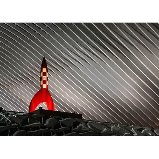 Night Launch Black Modern Wood Framed Art Print by Van Den, Jef
