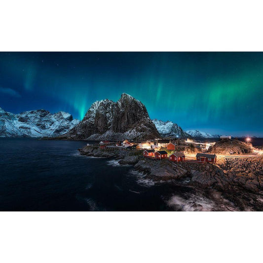 Dancing Over Hamnoy Black Modern Wood Framed Art Print by De La, Javier