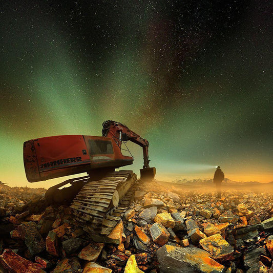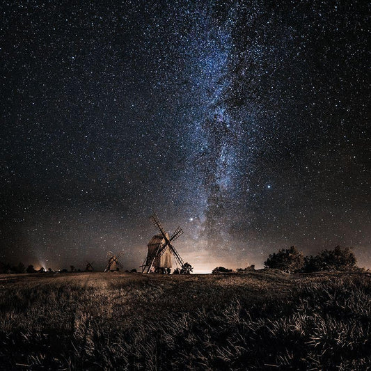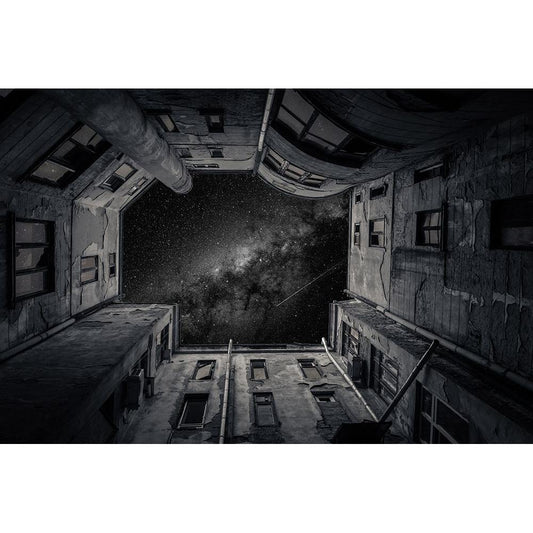 The Night Walked Down The Sky ... Black Modern Wood Framed Art Print by Depaepe, Yvette