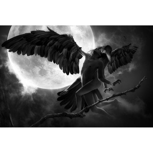 Raven Dance Black Modern Wood Framed Art Print by Kiciak, Christophe