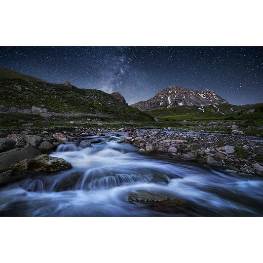 Starry Night At Mount Assiniboine Black Modern Wood Framed Art Print by Zhang, Yan